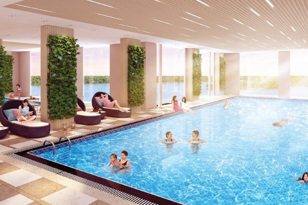 Hệ thống lọc nước tuần hoàn tại bể bơi giúp cho nguồn nước bể bơi luôn trong, sạch. Ngoài hoạt động bơi, bạn còn có thể tận hưởng trọng vẹn các hoạt động thư giãn tại đây là xông hơi, phòng tắm...