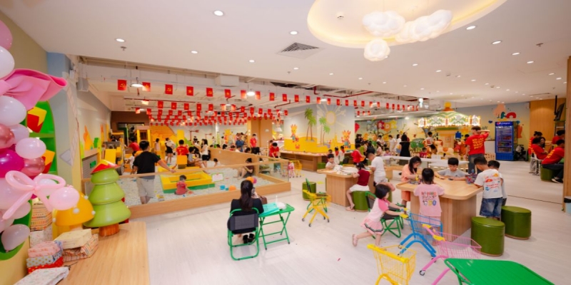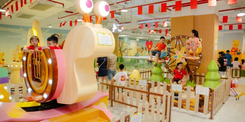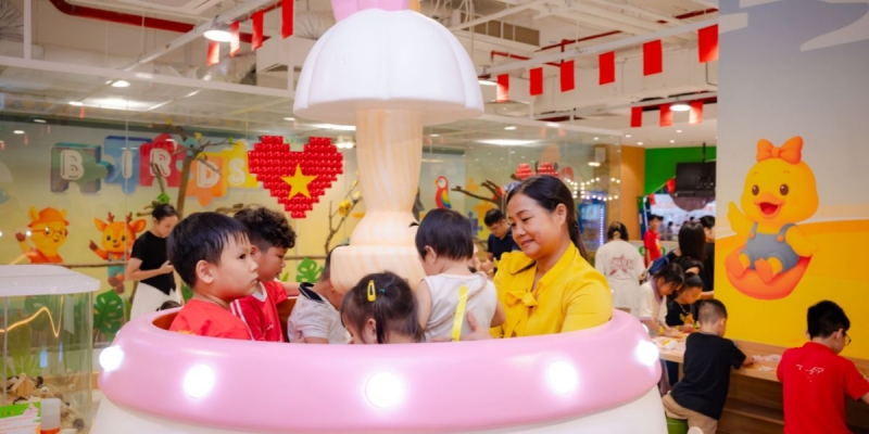 Không chỉ ngắm nhìn mà các bé còn được thỏa thích chạy nhảy, khám phá tại nhà cát rộng rãi, tham gia đu quay gấu, vòng quay ngựa gỗ, hay ngồi tàu hỏa vòng tròn đi quanh khuôn viên. Bên cạnh đó, khu lego và đất nặn giúp khơi dậy sự sáng tạo và phát triển trí tưởng tượng thông qua thao tác thủ công khéo léo.