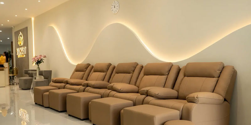 Cơ sở vật chất đầy đủ, tiện nghi hiện đại đảm bảo trải nghiệm thoải mái, thuận tiện. Mỗi chi tiết từ ghế massage, bồn ngâm chân đến ánh sáng, âm thanh đều được chăm chút tỉ mỉ để nâng tầm dịch vụ.