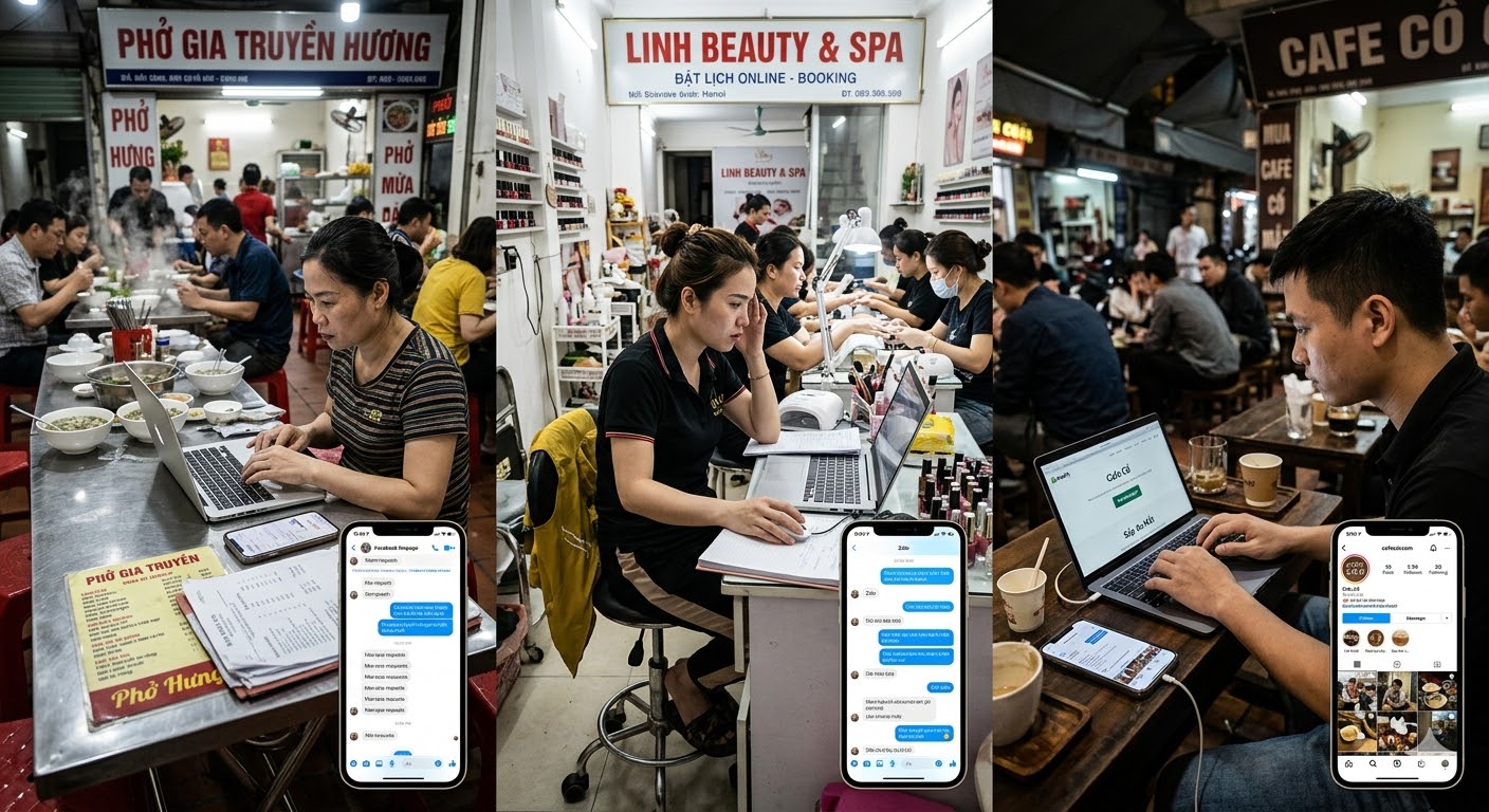 Nhưng khi muốn đặt một bữa ăn cho gia đình cuối tuần, một buổi spa hay một dịch vụ làm đẹp, trải nghiệm lại hoàn toàn khác. Phần lớn người tiêu dùng vẫn phải tìm fanpage, nhắn tin hỏi giá, chờ phản hồi, gọi điện xác nhận lịch. Có dịch vụ trả lời nhanh, có nơi phải đợi hàng giờ, thậm chí vài ngày.