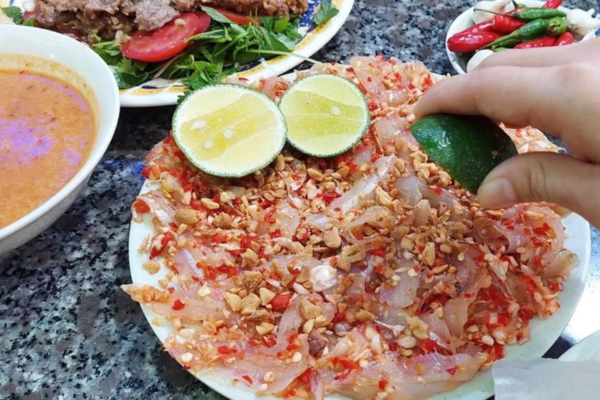 Món gỏi tươi ngon, không tanh, ăn cùng bánh tráng và nước chấm đậm đà - đặc sản trứ danh vùng biển.