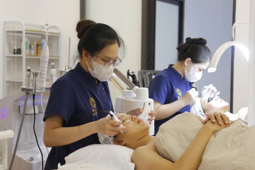 Một trong những yếu tố quan trọng tạo nên uy tín chính là đội ngũ kỹ thuật viên giàu kinh nghiệm, được đào tạo chuyên sâu. Đặc biệt, khách hàng sẽ được bác sĩ da liễu trực tiếp thăm khám và tư vấn phác đồ điều trị phù hợp với từng tình trạng da. Điều này giúp đảm bảo hiệu quả rõ rệt, đồng thời hạn chế tối đa các rủi ro trong quá trình làm đẹp, mang lại sự an tâm tuyệt đối cho khách hàng.