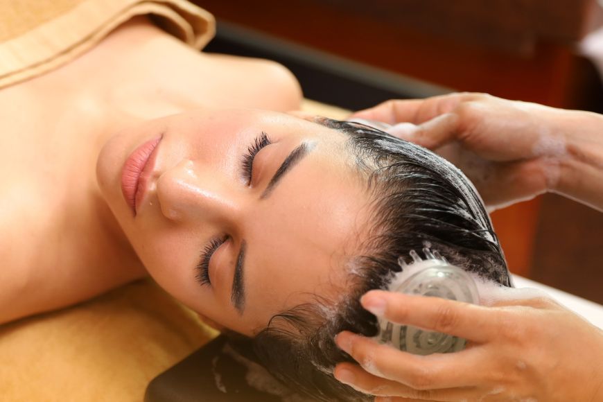 Nhờ kết hợp tinh dầu thảo mộc, gừng, sả, vỏ bưởi hoặc hà thủ ô, liệu trình giúp làm sạch da đầu, loại bỏ bã nhờn và tăng lưu thông máu đến chân tóc nhờ đó kích thích mọc tóc khỏe mạnh và giảm gãy rụng.