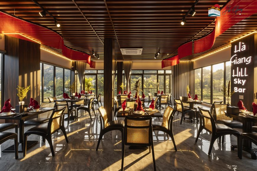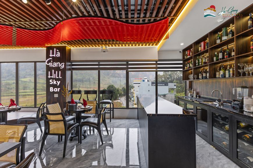 Nằm trên tầng cao nhất của khách sạn, Hà Giang Hill Sky Bar là điểm nhấn độc đáo, mang đến không gian thư giãn tuyệt vời giữa núi rừng hùng vĩ.