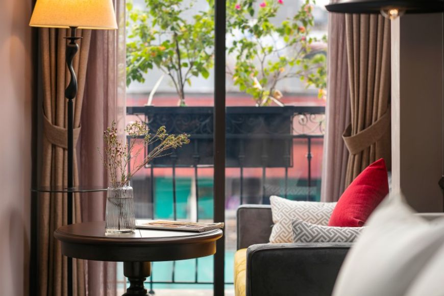 Junior Suite Balcony: Không gian tinh tế với ban công thoáng đãng, đón ánh sáng tự nhiên và làn gió phố cổ.