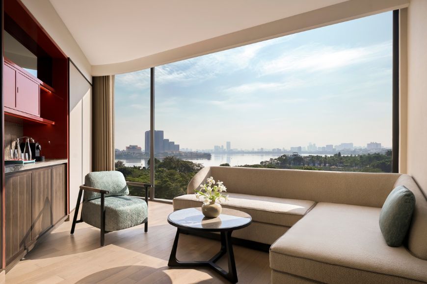 Khách sạn sở hữu 207 phòng và suite được thiết kế trang nhã, mang đến không gian nghỉ dưỡng yên tĩnh với tầm nhìn tuyệt đẹp hướng ra West Lake.