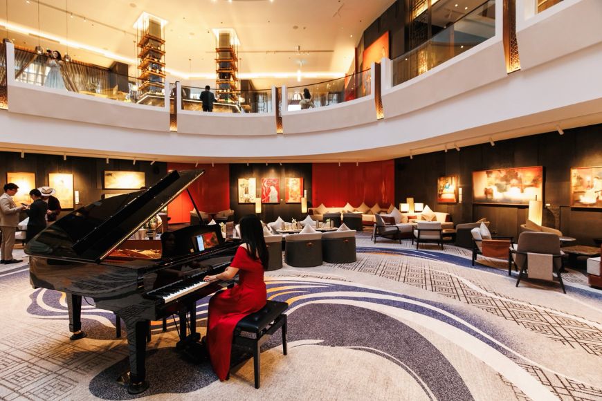 Không gian khách sạn được thiết kế như một cung điện hiện đại bên Hồ Tây, nơi từng chi tiết nội thất đều phản ánh sự hài hòa giữa di sản và phong cách sống đương đại.