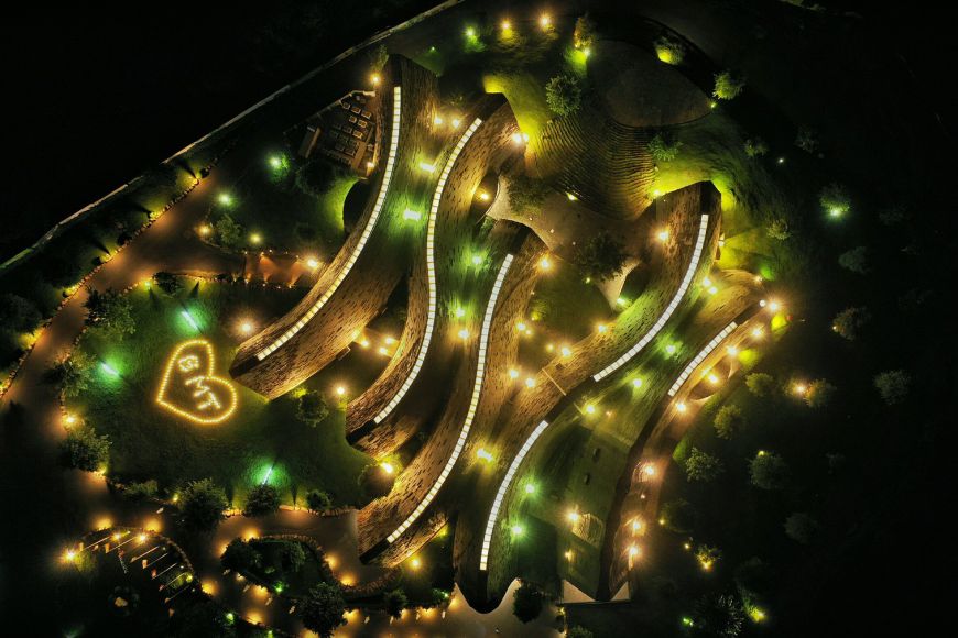 Các kiến trúc sư đã khéo léo “chôn” một phần khối nhà xuống đất, tạo nên nhiều tầng trải nghiệm, dẫn dắt du khách qua hành trình cảm xúc vừa gần gũi, vừa thiêng liêng.