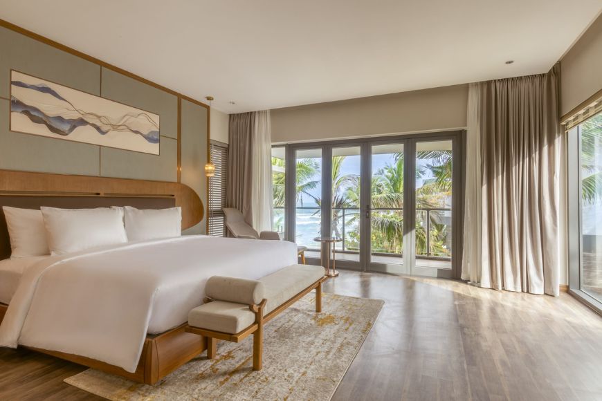 Đặc biệt, khu Ocean Grand Suite được bố trí theo dạng bậc thang độc đáo, gợi hình ảnh một con tàu lớn đang hướng ra đại dương bao la. Mỗi căn phòng giống như một tác phẩm nghệ thuật, nơi sự tinh tế và đẳng cấp được thể hiện trong từng chi tiết thiết kế.