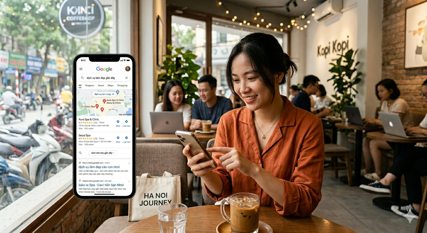 Trong bối cảnh đó, việc bán dịch vụ không còn bắt đầu tại cửa hàng, mà bắt đầu từ lúc khách hàng tìm kiếm. Doanh nghiệp không chỉ cạnh tranh với những đơn vị xung quanh, mà còn cạnh tranh trong chính không gian thông tin mà khách hàng tiếp cận.