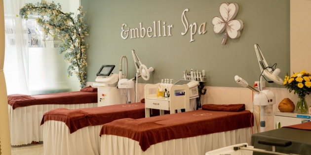 Dành cho những ai đang tìm kiếm một không gian yên bình để làm đẹp và cân bằng lại cơ thể sau những căng thẳng thường nhật, Embellir Spa mang đến chuỗi dịch vụ chăm sóc toàn diện với massage, dưỡng da, trị mụn - nám, phun thêu thẩm mỹ… Từng bước trong liệu trình đều hướng đến sự thư giãn sâu, nuôi dưỡng vẻ ngoài từ tự nhiên và nâng niu từng giác quan.
