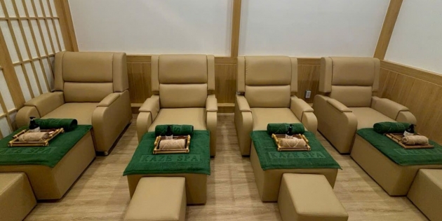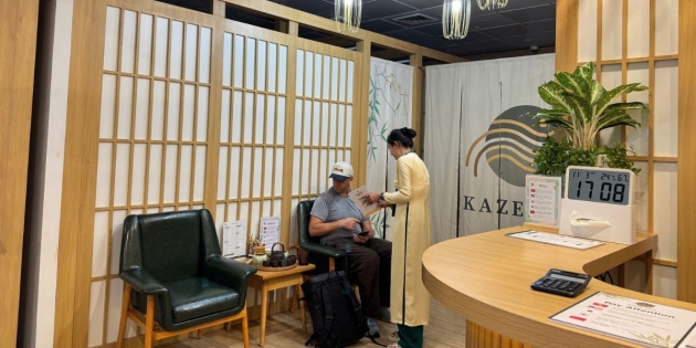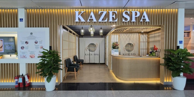 Bạn đang chuẩn bị cho một chuyến bay dài, hay vừa trải qua nhiều giờ di chuyển căng thẳng? Hãy dừng chân tại Kaze Spa - ngay tại ga đi quốc tế sân bay Tân Sơn Nhất, trải nghiệm các liệu trình massage thư giãn cổ vai gáy, chân và lưng được thiết kế đặc biệt dành riêng cho các hành khách. Với không gian hiện đại, tinh tế cùng sự kết hợp giữa hai gam màu sang trọng vàng gold và xanh rêu, Kaze Spa mang đến khoảnh khắc thư giãn lý tưởng, giúp bạn giải tỏa nhức mỏi, tái tạo năng lượng trước giờ khởi hành.