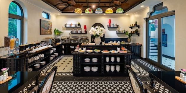 Tại La Charm, mỗi bữa ăn không chỉ đơn thuần là thưởng thực món ngon; đó là hành trình khám phá nét đẹp ẩm thực Việt Nam qua lăng kính nghệ thuật. Nhà hàng tại khách sạn được thiết kế độc đáo, hài hòa với tổng thể Đông Dương, phục vụ những món ăn được chăm chút kỹ lưỡng cả về hương vị lẫn trình bày. Quầy bar là không gian thú vị để thư giãn cuối ngày, nhâm nhi cocktail trong khung cảnh lãng mạn và sang trọng.
