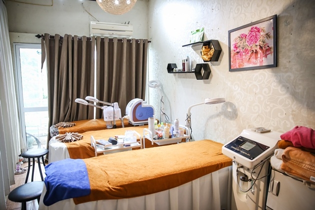 Không gian thiết kế hiện đại, sử dụng gam màu sáng làm chủ đạo, kết hợp cùng nhiều chi tiết trang trí xinh xắn, tạo điểm nhấn ấn tượng trong lòng khách hàng. Các kệ gỗ bày trí nhiều sản phẩm, mỹ phẩm cao cấp, mang đến sự yên tâm khi sử dụng dịch vụ.