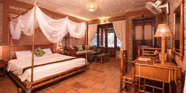 Vạn Chài Resort sở hữu hệ thống 80 phòng và 2 villa cao cấp, trong đó mỗi phòng đều có diện tích rộng rãi, trang bị phòng tắm hiện đại và ban công riêng hướng ra biển hoặc khu vườn sinh thái tĩnh lặng. Không gian nghỉ mang sắc thái hài hòa, tinh tế của kiến trúc Pháp, đem lại cảm giác sang trọng nhưng gần gũi, dễ chịu.