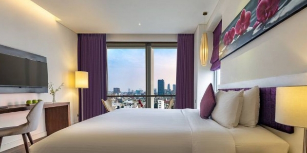 Mỗi căn phòng tại Vanda đều là sự kết hợp hoàn hảo giữa phong cách hiện đại và sự ấm cúng, tạo cảm giác thân thuộc nhưng không kém phần đẳng cấp. Từ ô cửa kính lớn, bạn có thể cảm nhận nhịp sống thành phố rộn ràng, ngắm nhìn cầu Rồng lung linh về đêm hay đón ánh bình minh rực rỡ mỗi sớm mai.