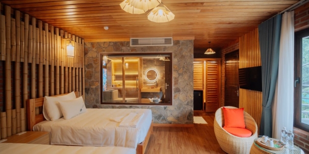 Từ khách sạn, bạn dễ dàng tới thăm các điểm du lịch nổi tiếng của Ninh Bình như Chùa Bái Đính, Vườn chim Thung Nham, Nhà thờ đá Phát Diệm,… Các cặp đôi có thể dành buổi chiều thư thả đạp xe dạo quanh những con đường làng yên ả, trong khi gia đình có thể cùng nhau ngắm cảnh hoặc nghỉ ngơi bên hồ bơi ngoài trời.