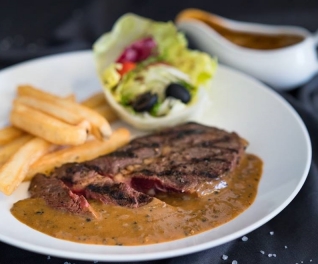 Phần Steak được tẩm ướp đậm đà, chín tới, kết hợp với nước sốt đa dạng, phong phú mà thực khách có thể lựa chọn tùy theo khẩu vị.