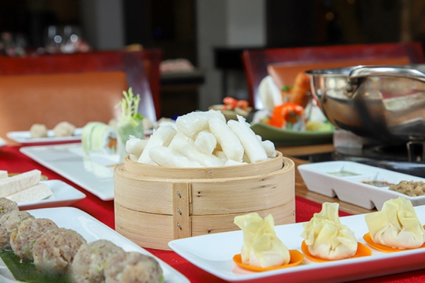 Bên cạnh đó là các loại rau củ tươi, sạch, xanh non mơn mởn: cải thảo, bắp cải, hành tây, củ cải trắng, rau diếp xoăn, nấm hương, nấm mỡ, nấm mộc nhĩ, bắp Mỹ...khiến cho bữa ăn cân bằng hương vị và dinh dưỡng.