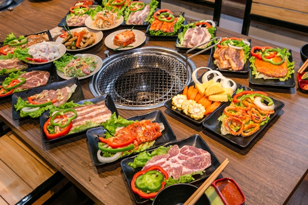 Thực đơn các món nướng đa dạng từ ba chỉ bò, ba chỉ heo, sườn sụn, nạc vai được tuyển chọn kỹ càng, tẩm ướp vừa vặn kết hợp với nước sốt thơm ngon, độc quyền chắc chắn sẽ đánh thức vị giác của thực khách.