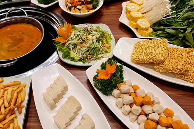 Chuyển sang lẩu, thực khách sẽ được thưởng thức món lẩu Thái hương vị đậm đà, chua cay đầy kích thích và nhiều đồ nhúng tươi ngon như: Ngao trắng, Ba chỉ bò Mỹ, Cá viên/tôm viên, Đậu phụ, Rau tổng hợp.