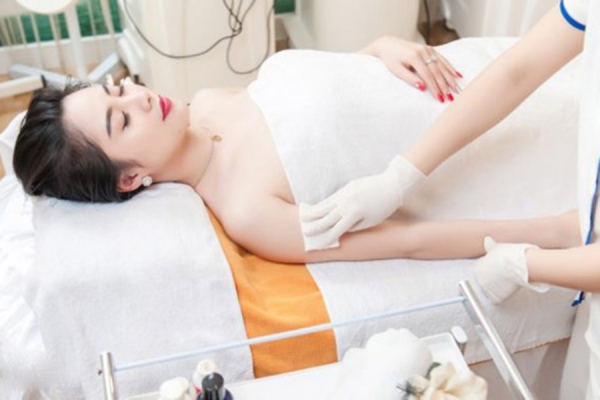 - Bước 1: Tẩy da chết kết hợp với massage toàn thân giúp thư giãn.