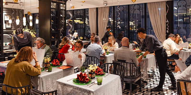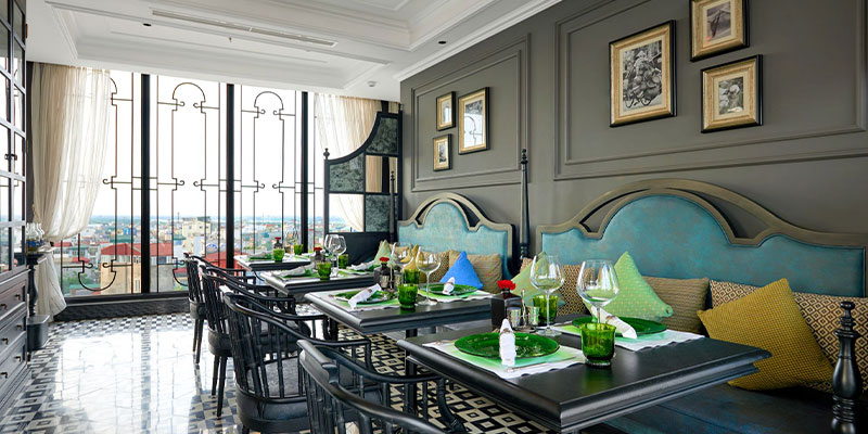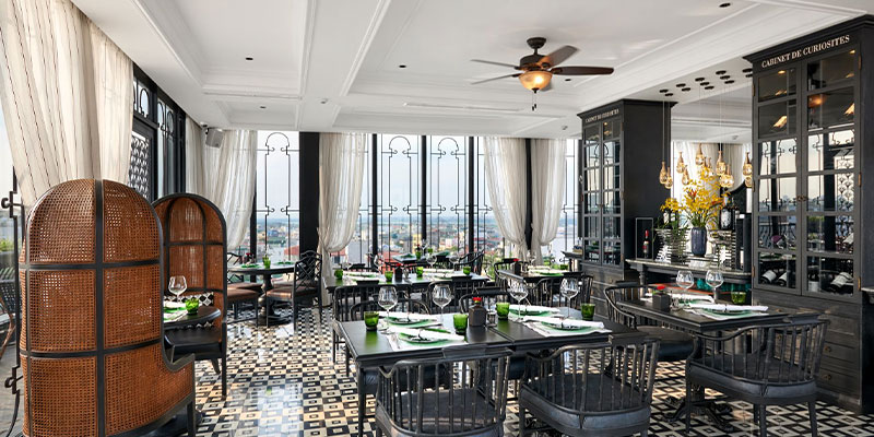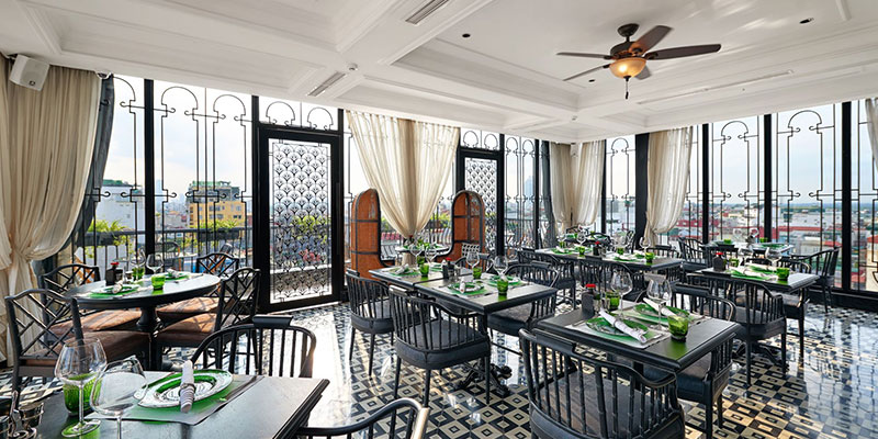Đúng như tên gọi, Cloud Nine Restaurant là nơi thực khách có thể “chạm mây” giữa phố cổ. Không gian được thiết kế theo phong cách châu Âu hiện đại với những đường nét tinh tế, ánh sáng ấm áp và tầm nhìn bao trọn thành phố Hà Nội cổ kính nhưng đầy sức sống. Với sức chứa khoảng 80 khách cùng khu balcony riêng tư cho 10 khách, nơi đây là lựa chọn lý tưởng cho những buổi hẹn hò lãng mạn, gặp gỡ bạn bè hay tiếp khách sang trọng.