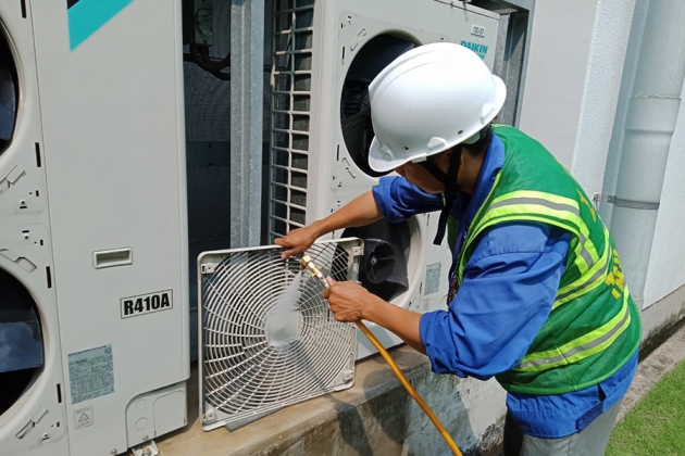 Quy trình được thực hiện từ thao tác kiểm tra trước và sau khi bảo trì. Sau khi vệ sinh xong dàn lạnh, thợ dùng bơm áp lực vệ sinh dàn ngưng tụ và quạt dàn nóng.