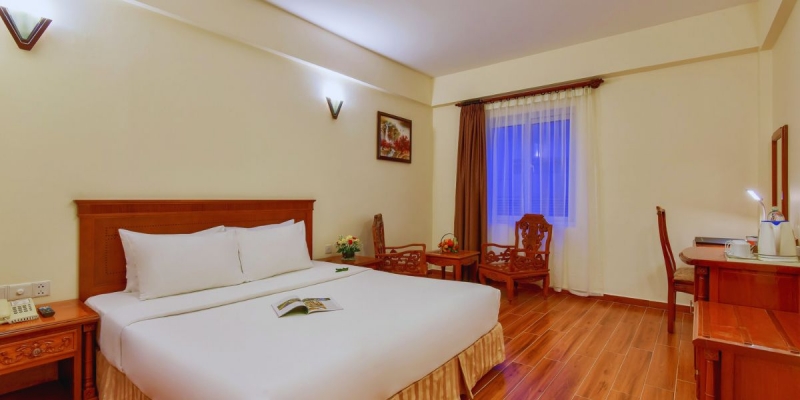 Phòng Standard Double tại Park Hotel Dalat có diện tích vừa phải, được bố trí 01 giường đôi êm ái, mang đến không gian nghỉ ngơi riêng tư và dễ chịu. Thiết kế tối giản nhưng tinh tế, phù hợp cho cặp đôi du lịch Đà Lạt hoặc khách công tác lưu trú ngắn ngày.
