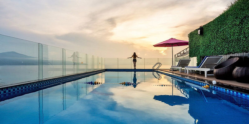 Không gian hồ bơi trên sân thượng với tầm nhìn hướng biển ấn tượng sẽ là điểm nhấn lý tưởng để cả nhà đắm mình trong làn nước mát và thư giãn dưới ánh hoàng hôn. Dịch vụ spa chuyên nghiệp với liệu trình đá nóng, hương liệu và phòng xông hơi khô – ướt mang đến phút giây nghỉ ngơi trọn vẹn.