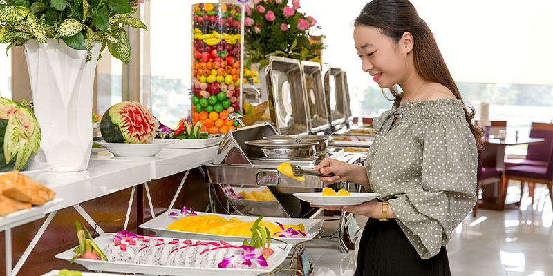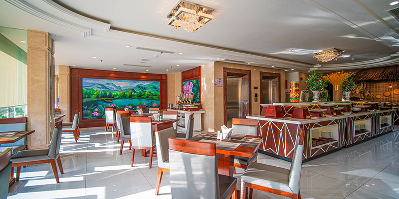 Nhà hàng tại khách sạn phục vụ thực đơn đa dạng từ món Việt truyền thống đến ẩm thực quốc tế. Quý khách còn được tận hưởng phòng tập gym với trang thiết bị đầy đủ, thích hợp cho du khách muốn giữ lối sống lành mạnh trong hành trình.