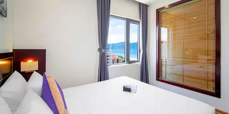 Từ ô cửa kính trong veo, ánh nắng ban sớm nhẹ nhàng ùa vào, đánh thức bạn bằng sắc trời trong trẻo của thành phố biển. Chỉ cần mở cửa sổ, bạn đã có thể cảm nhận làn gió biển mằn mặn, nghe tiếng sóng vỗ xa xa và để mọi lo toan tan dần trong hương vị thư thái của đại dương.