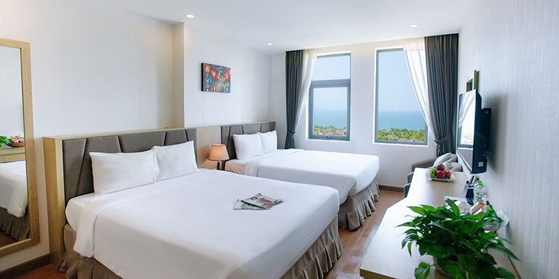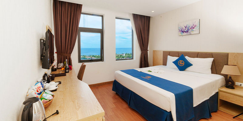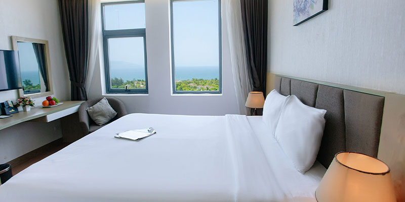 Phòng Deluxe Sea View sáng thoáng, nhìn ra biển
