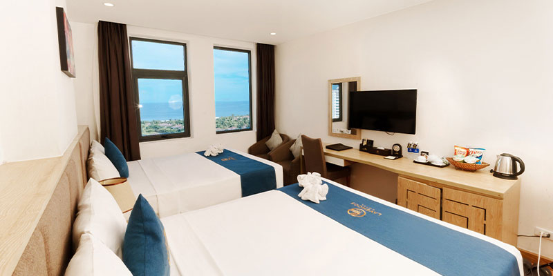 Nếu bạn đang tìm kiếm điểm đến lý tưởng cho kỳ nghỉ tại Đà Nẵng với trải nghiệm nghỉ dưỡng thuận tiện, sang trọng và gần biển, thì Phòng Deluxe Sea View tại Lavencos Hotel Da Nang chính là lựa chọn không nên bỏ qua. Hạng phòng này sở hữu thiết kế hiện đại, view nhìn trực diện hoặc một phần ra biển Mỹ Khê - bãi biển nổi tiếng nhất thành phố, kết hợp với các tiện nghi cao cấp và dịch vụ chuyên nghiệp. Phù hợp với cặp đôi muốn tìm kiếm không gian lãng mạn, nhóm bạn yêu thích khám phá hay gia đình nhỏ đi du lịch, gói lưu trú này không chỉ mang đến sự thoải mái mà còn đi kèm mức giá ưu đãi hấp dẫn khi đặt qua Dealtoday.