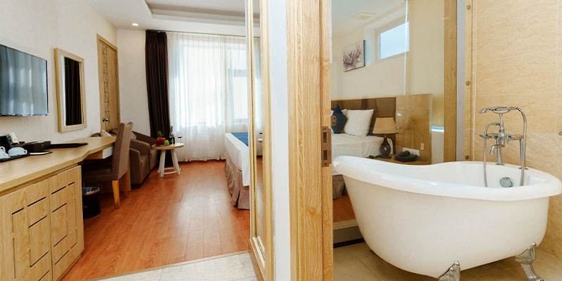 Phòng Superior tại Lavencos Hotel có diện tích 30m2 - rộng vừa đủ để tạo sự thoải mái trong từng bước di chuyển. Nội thất được bố trí hợp lý, ánh sáng dịu, gam màu hiện đại tạo cảm giác dễ chịu. Với hai lựa chọn bố trí: giường đôi hoặc 2 giường đơn, loại phòng này rất linh hoạt, phù hợp cho nhiều hình thức lưu trú khác nhau.