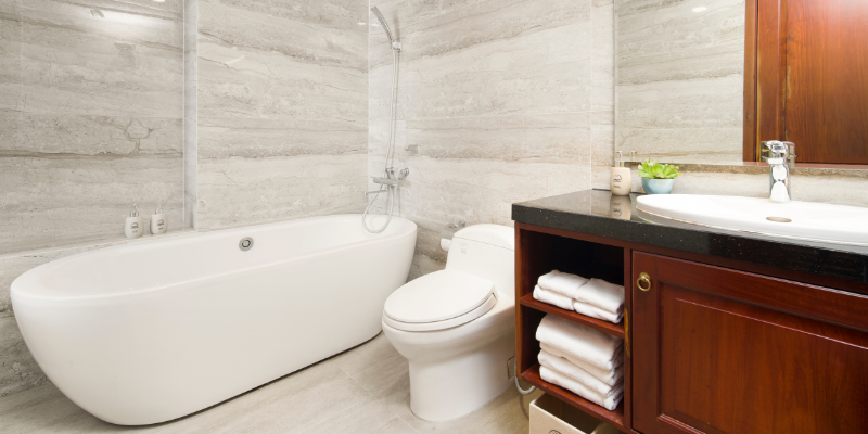 Trong phòng còn có bồn tắm riêng – đặc quyền của hạng Suite. Đây là nơi du khách có thể thả mình trong dòng nước ấm, kết hợp chút tinh dầu dễ chịu để xua tan mệt mỏi, tạo nên phút giây thư giãn sâu lắng.