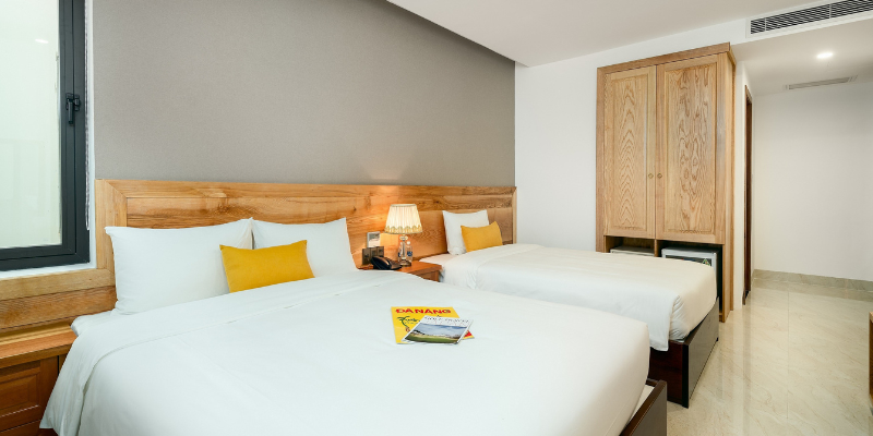Phòng Superior tại Sunny Ocean Hotel & Spa được thiết kế với diện tích khoảng 22m², nhỏ gọn nhưng tinh tế, là lựa chọn lý tưởng cho những du khách yêu thích sự thoải mái và sạch sẽ. Tùy theo nhu cầu, bạn có thể chọn 1 giường đôi êm ái hoặc 2 giường đơn riêng tư, mang lại sự linh hoạt cho cặp đôi, nhóm bạn hoặc khách đi công tác.