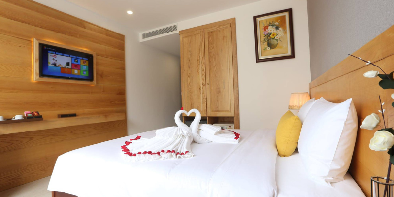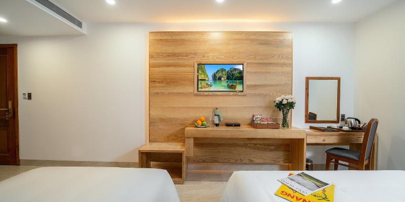 Không gian phòng được chăm chút tỉ mỉ, từ ánh sáng ấm dịu, nội thất trang nhã cho đến các tiện ích hiện đại như TV màn hình phẳng, điều hòa, minibar, phòng tắm rộng rãi… Tất cả đều hướng đến việc đem lại cảm giác thoải mái, thư thái và an tâm cho du khách, như đang ở trong chính căn phòng của mình.
