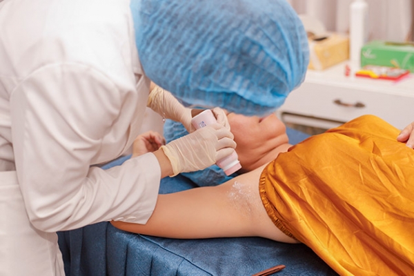 Đầu tiên, bác sĩ sẽ thăm khám và đưa ra mức sóng phù hợp với cơ địa của bạn. Kế đó, vệ sinh sạch sẽ vùng da điều trị, cạo lông và thoa gel giúp các bước sóng tác động vào da dễ dàng loại bỏ các nang lông cứng đầu.