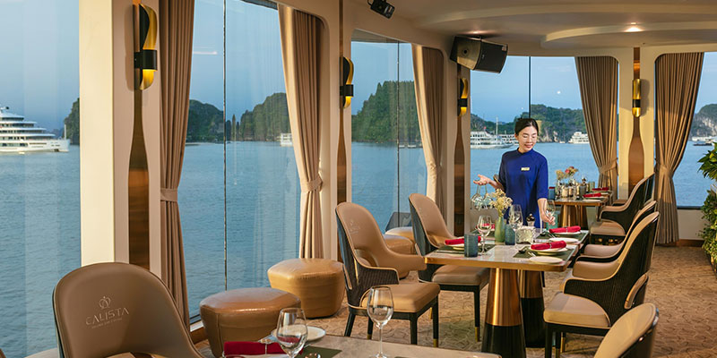 Từ tầm nhìn toàn cảnh ngoạn mục, tiện nghi xa hoa đến dịch vụ chuẩn 6 sao quốc tế, Calista Cruise Hạ Long Bay không chỉ mang lại một chuyến du ngoạn, mà còn là một lễ kỷ niệm tinh tế của thiên nhiên, văn hóa và cảm xúc con người. Mỗi khoảnh khắc trên Calista là một phần ký ức khó phai – nơi bạn được sống chậm lại, tận hưởng vẻ đẹp thuần khiết và sang trọng đến từng hơi thở.