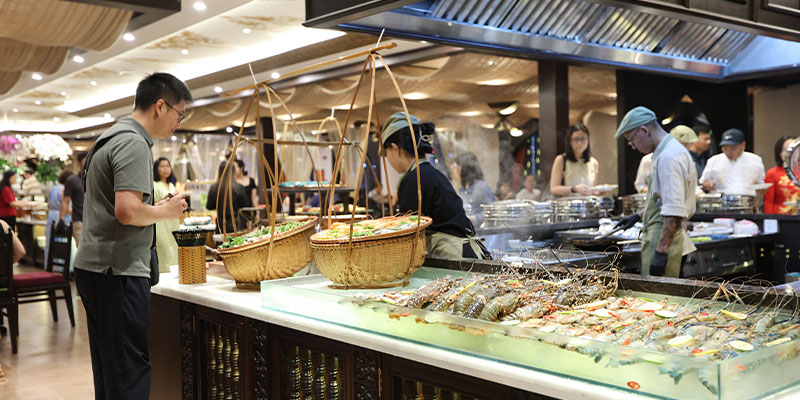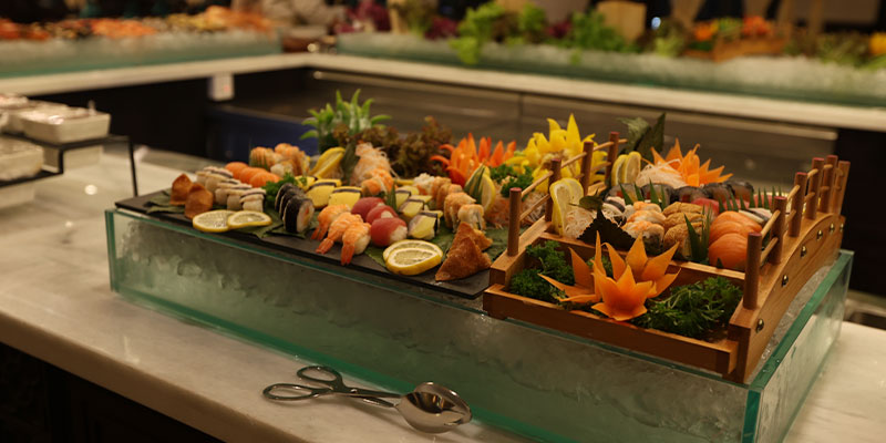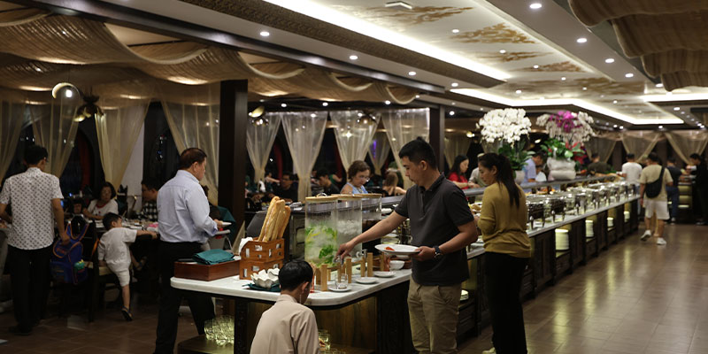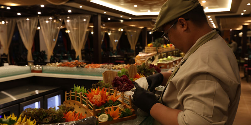 Thưởng thức hơn 30 món ăn từ hải sản tươi sống như cua, tôm, ốc hương, ghẹ… được chế biến công phu theo phong cách Á - Âu fusion. Ngoài ra còn có các món mặn nóng hổi và món tráng miệng hấp dẫn đi cùng nước ngọt, detox và nước suối miễn phí. Đây là bữa tối trọn vẹn cho cả vị giác lẫn tâm hồn.