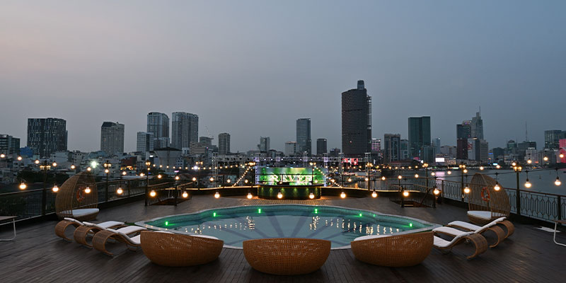 Lịch trình tour bắt đầu lúc 6:00 PM đón khách lên tàu, trải nghiệm không gian mở trên sông Sài Gòn lúc hoàng hôn. Khoảng 7:45 PM, du thuyền rời bến qua những địa danh mang dấu ấn lịch sử như Bến Nhà Rồng, lan dần đến khu vực cầu Phú Mỹ hiện đại. 9:30 - 10:00 PM, du khách sẽ cập bến trong khoảnh khắc Sài Gòn lên đèn rực rỡ.