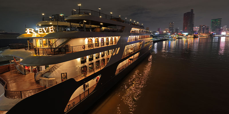 REVER Cruise mang đến trải nghiệm hoàn toàn khác biệt và độc đáo tại trung tâm TPHCM - nơi ẩm thực đỉnh cao giao hòa cùng vẻ đẹp trầm lắng của thành phố về đêm. Với hành trình dài 4 giờ trên sông, thực khách sẽ vừa thưởng thức buffet hải sản thượng hạng vừa ngắm nhìn những biểu tượng của thành phố như Bến Nhà Rồng, cầu Phú Mỹ trong không gian đẳng cấp.