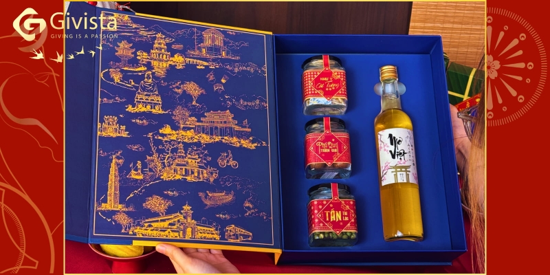 Hợp tác cùng các nhà cung cấp đặc sản uy tín trên toàn quốc, GIVISTA chọn lọc kỹ lưỡng từng nguyên liệu để tạo nên hộp quà Tết vừa ngon miệng, vừa chỉn chu về hình thức.