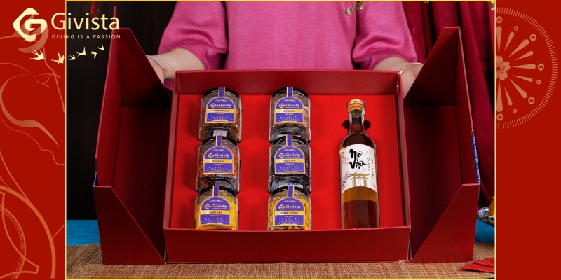 Tết đến xuân về là thời điểm lý tưởng để tri ân và trao tặng những món quà ý nghĩa cho người thân, đối tác và bạn bè. GIVISTA mang đến hộp quà Tết Long Phụng 2026 dưới hình thức e-Voucher, sở hữu thiết kế vali cao cấp ép kim vàng và bộ sản phẩm đặc sản phong phú lên đến 6 hũ cùng rượu mơ Việt chính gốc. Với sự chọn lọc kỹ càng từ những nhà cung cấp uy tín, hộp quà hội tụ trọn vẹn sắc - hương - vị từ vị ngọt thanh của xoài sấy đến cay nồng đượm vị của khô gà lá chanh. Món quà là lựa chọn lý tưởng dành cho doanh nghiệp, giới văn phòng, gia đình và những ai đang tìm kiếm một phần quà ấn tượng, trang trọng và đong đầy tinh thần lễ Tết.