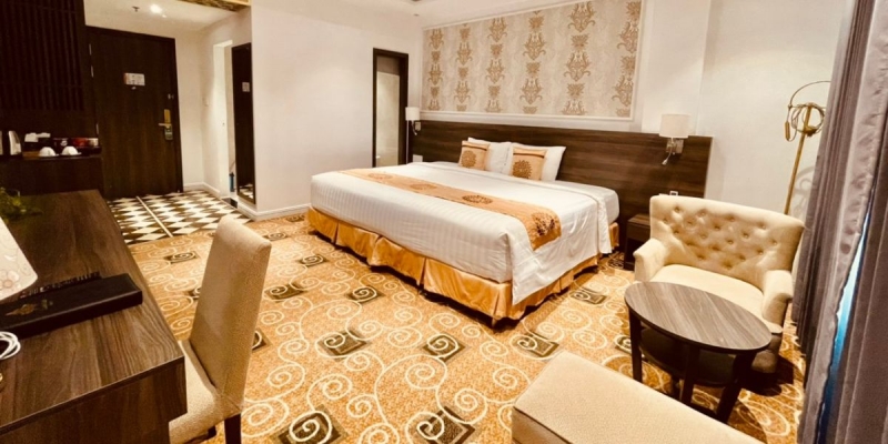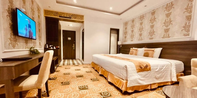Không gian phòng được thiết kế tinh tế, tối ưu sự tiện nghi với đầy đủ trang thiết bị hiện đại như điều hòa, TV, wifi tốc độ cao, khu vực làm việc riêng và phòng tắm tiện nghi. Đây là lựa chọn phù hợp cho cả khách công tác cần sự yên tĩnh lẫn du khách mong muốn nghỉ ngơi thư giãn.