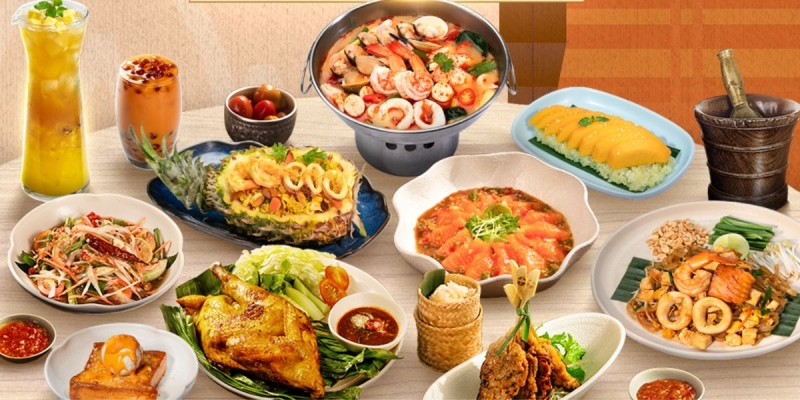 Thai Market sở hữu menu phong phú với nhiều món Thái đặc trưng như lẩu Thái, cà ri Thái và các món khai vị hấp dẫn: