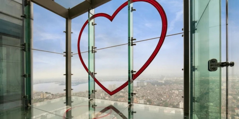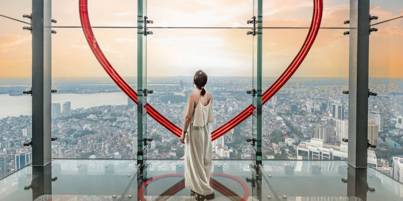 Toạ lạc tại vị trí trung tâm của thủ đô Hà Nội, toà nhà Lotte Center đã trở thành một biểu tượng của kiến trúc Hà Thành với thiết kế lấy cảm hứng từ tà áo dài truyền thống của người Việt. Chỉ mất 52 giây để chạm tới “bầu trời Hà Nội” trên tầng 65, bạn sẽ được trải nghiệm cảm giác mạnh khi check-in tại cầu kính trong suốt và ngắm hoàng hôn có "1-0-2" bao trọn khoảnh khắc mặt trời lặn ở Hà Nội.