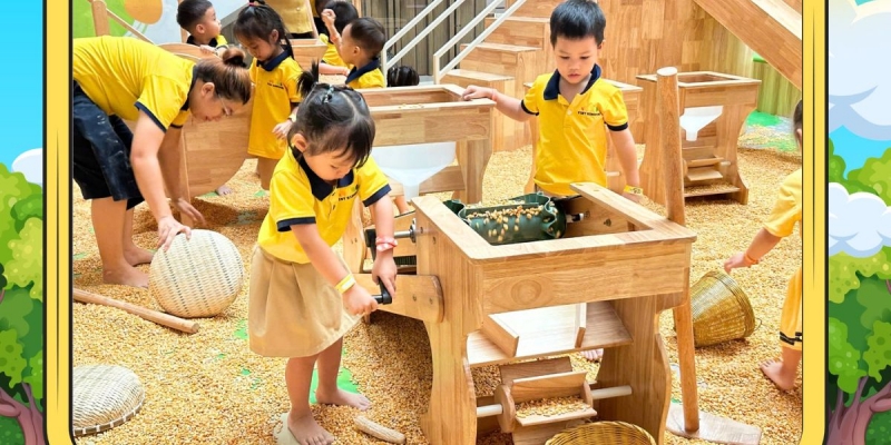 • Canh tác rau xanh: Từ những hạt giống bé nhỏ, qua từng công đoạn gieo trồng, chăm sóc và thu hoạch, các bé sẽ hiểu được giá trị của sự kiên nhẫn và lao động.