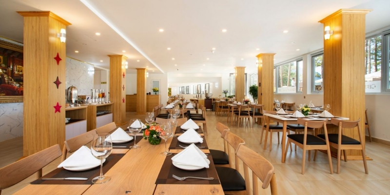 CEREJA Hotel & Resort chú trọng từng chi tiết dịch vụ để mỗi kỳ nghỉ đều trọn vẹn. Nhà hàng riêng phục vụ món Âu và Việt, buffet sáng view hồ, khu vực ăn uống ngoài trời giữa vườn hoa, phù hợp mọi sở thích và độ tuổi.